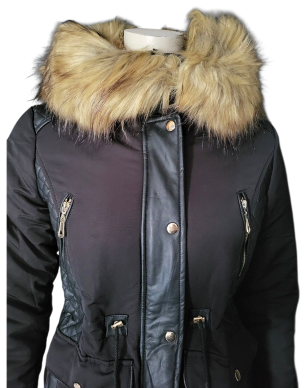 Heerlijke warme gevoerde winterjas met een dikke bont capuchon.