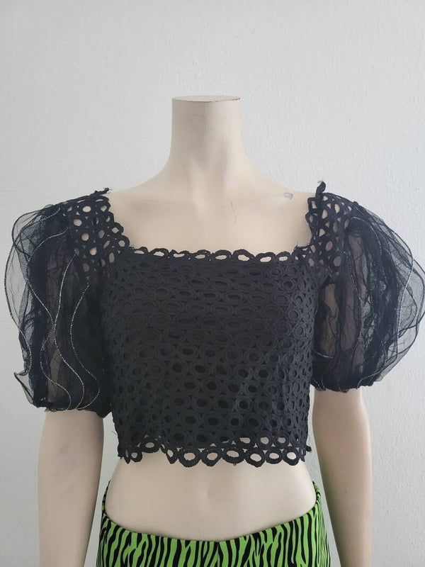Zwarte crop top met pofmouwen