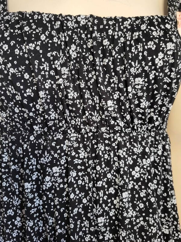 Super mooie zwarte jurk mouwloos met bloemen motief.
