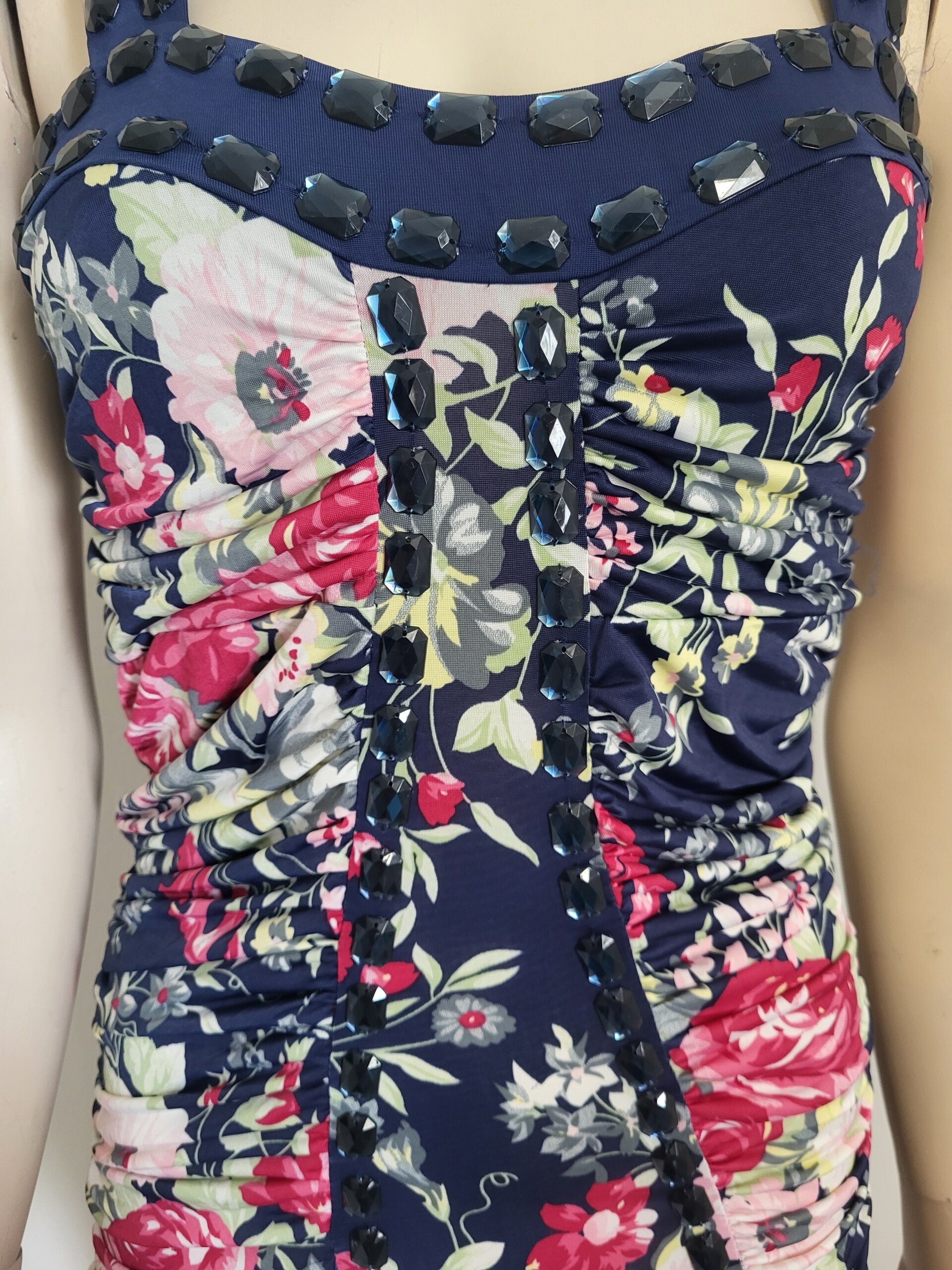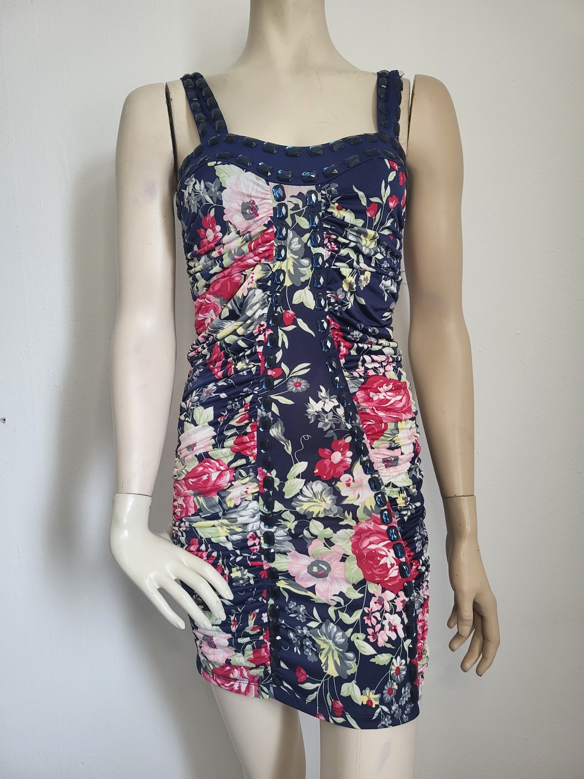 Super mooie donkerblauwe jurk met bloemen motief
