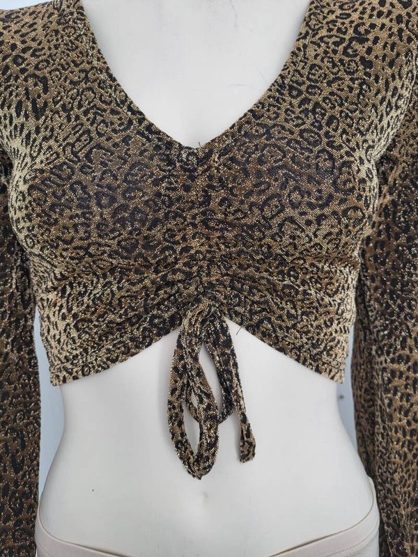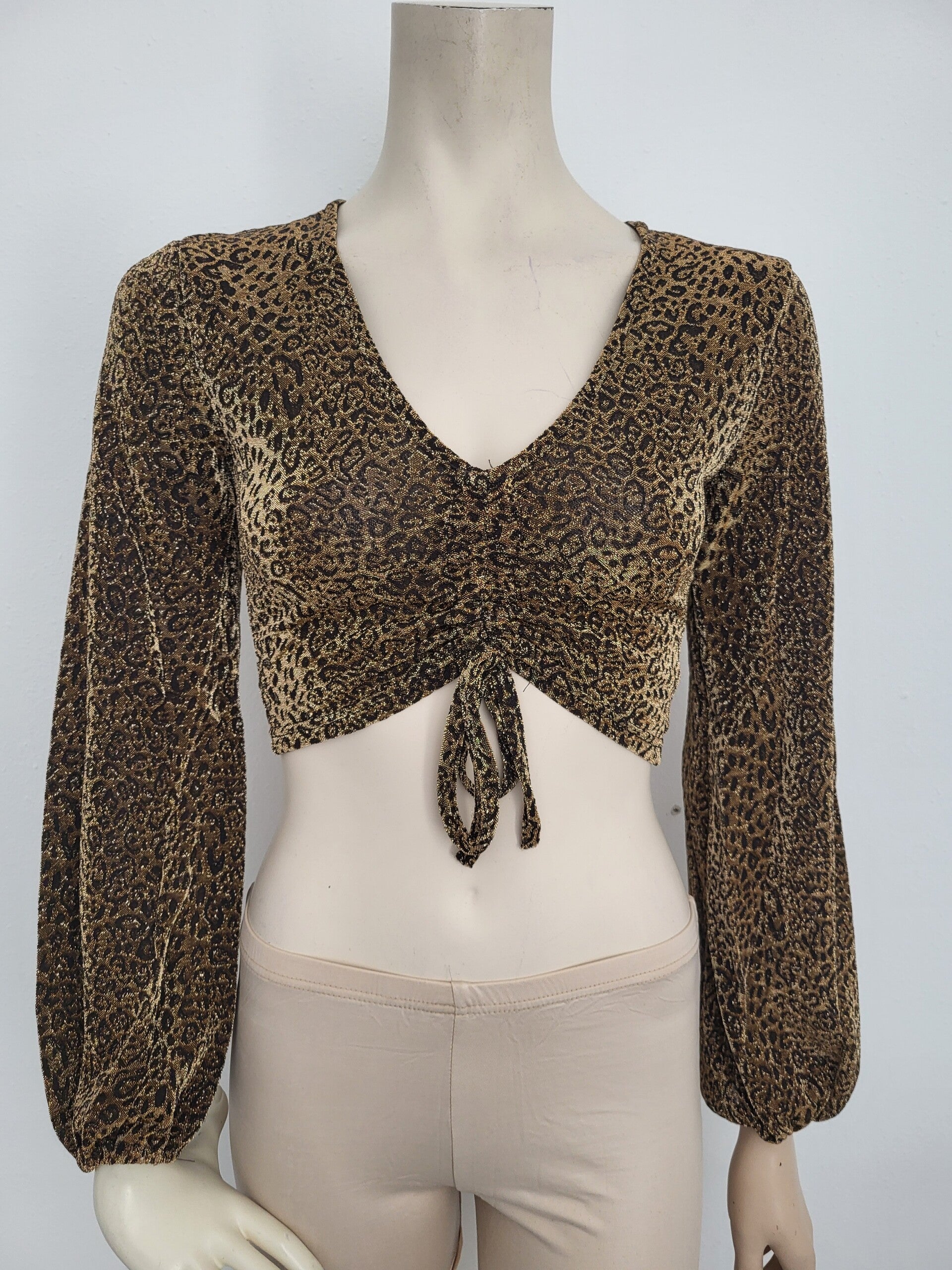 Gouden crop top met lange mouwen en glitters met lovertjes