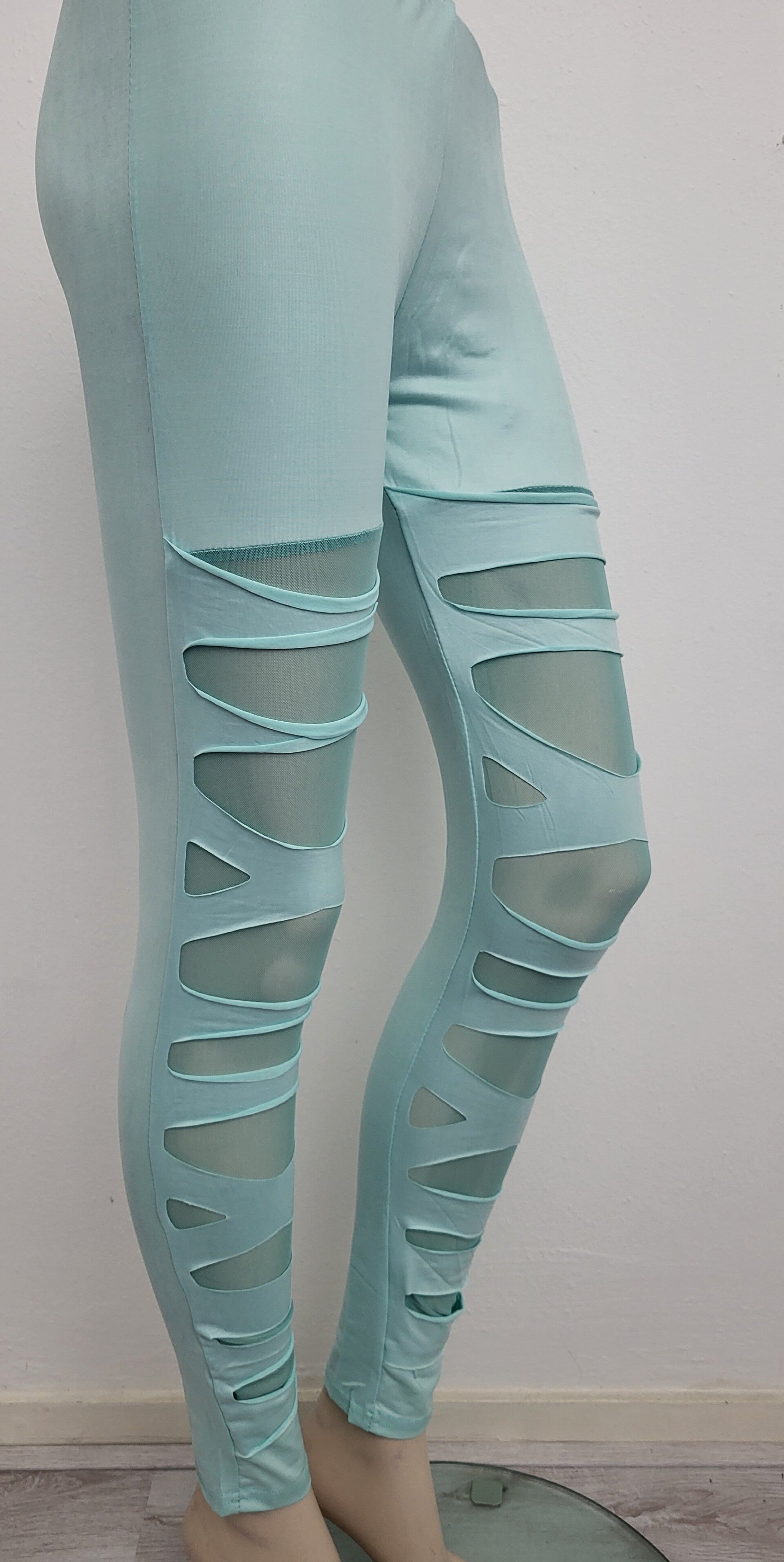 Lederlook legging licht blauw