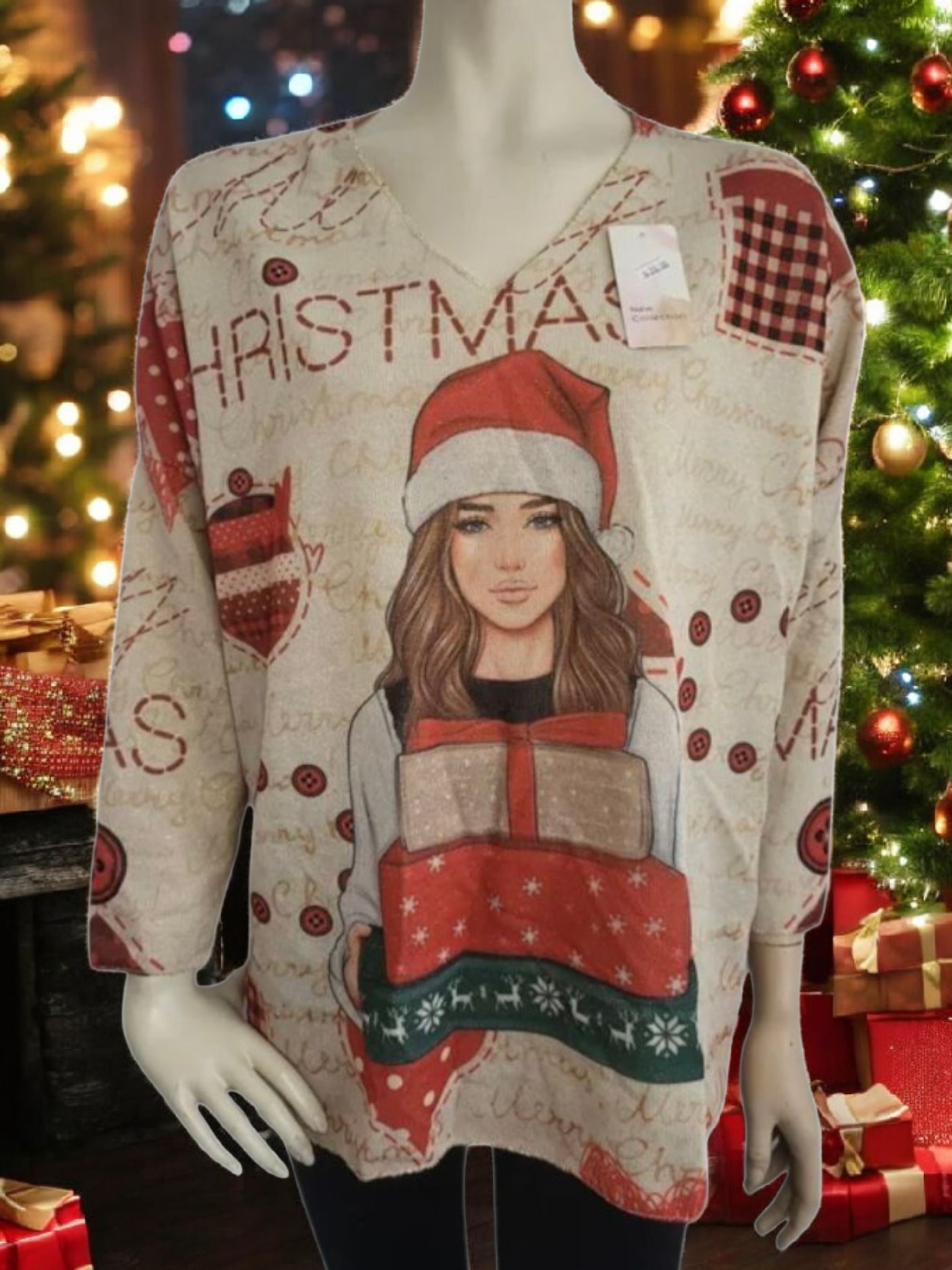 Kerst trui in de kleur rood met kleine gouden glitters