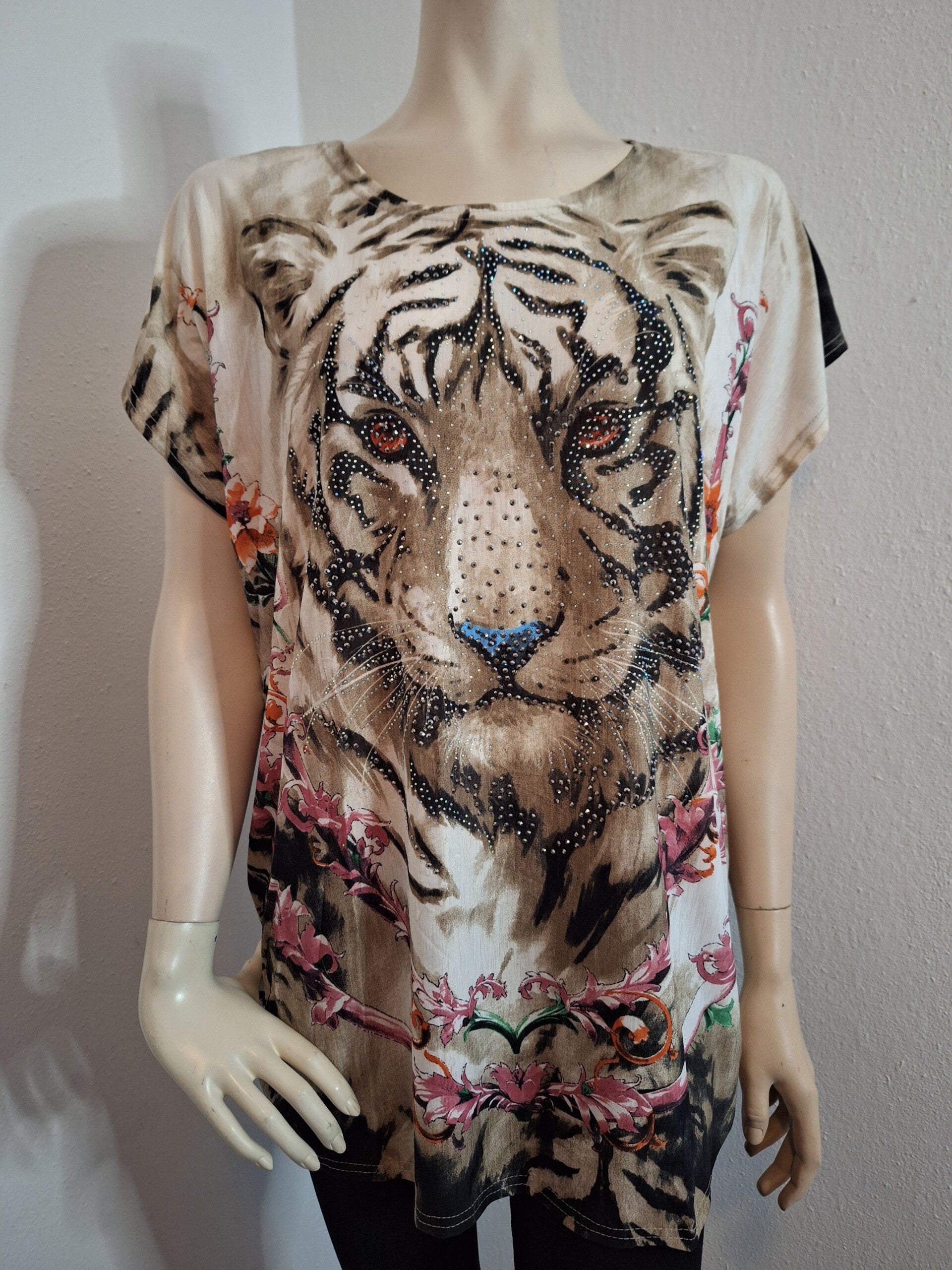 Tuniek korte mouw met strassteentjes en mooie tijger opdruk