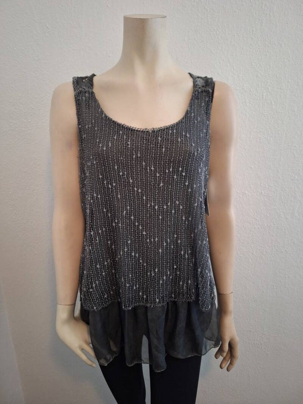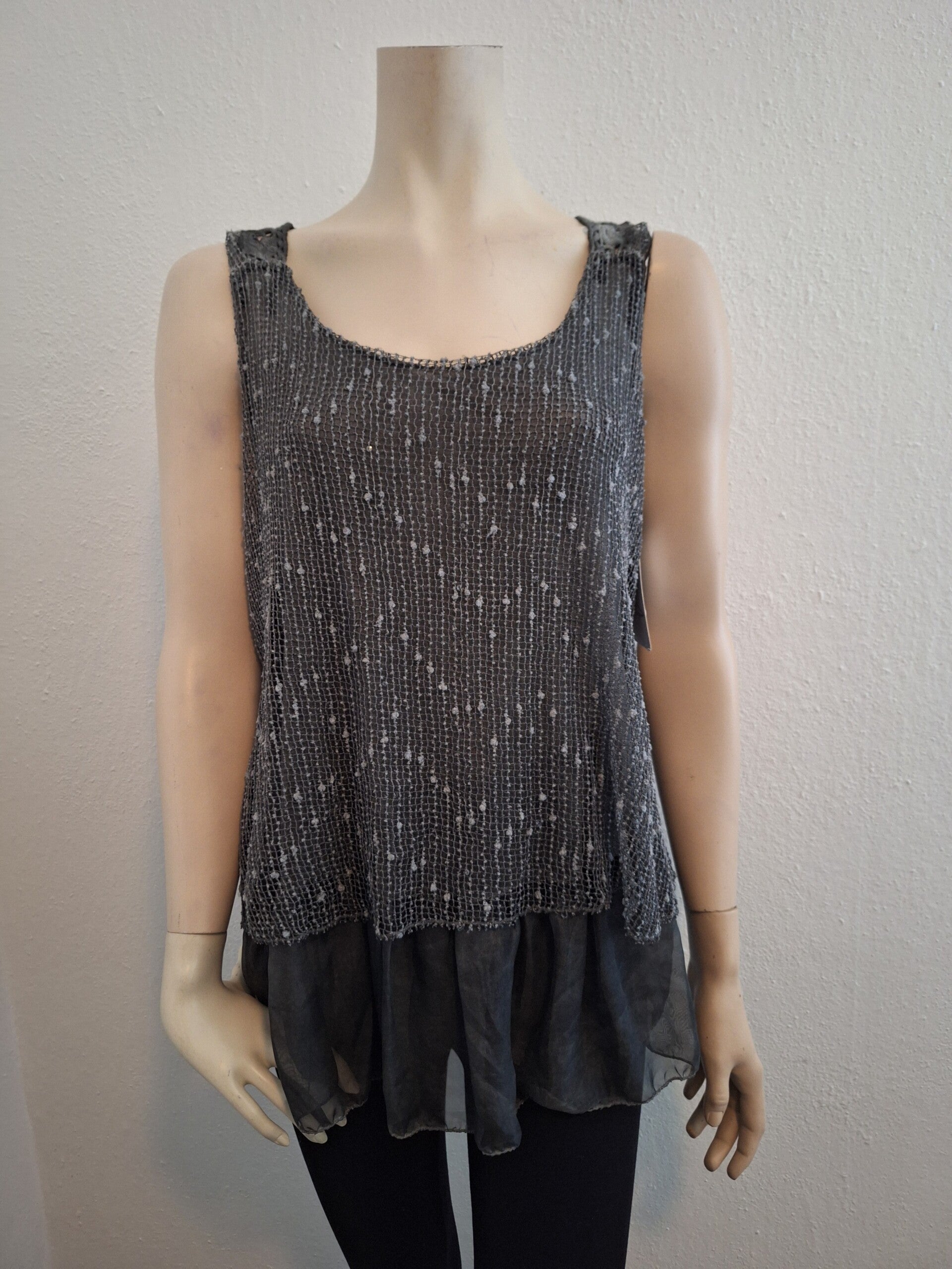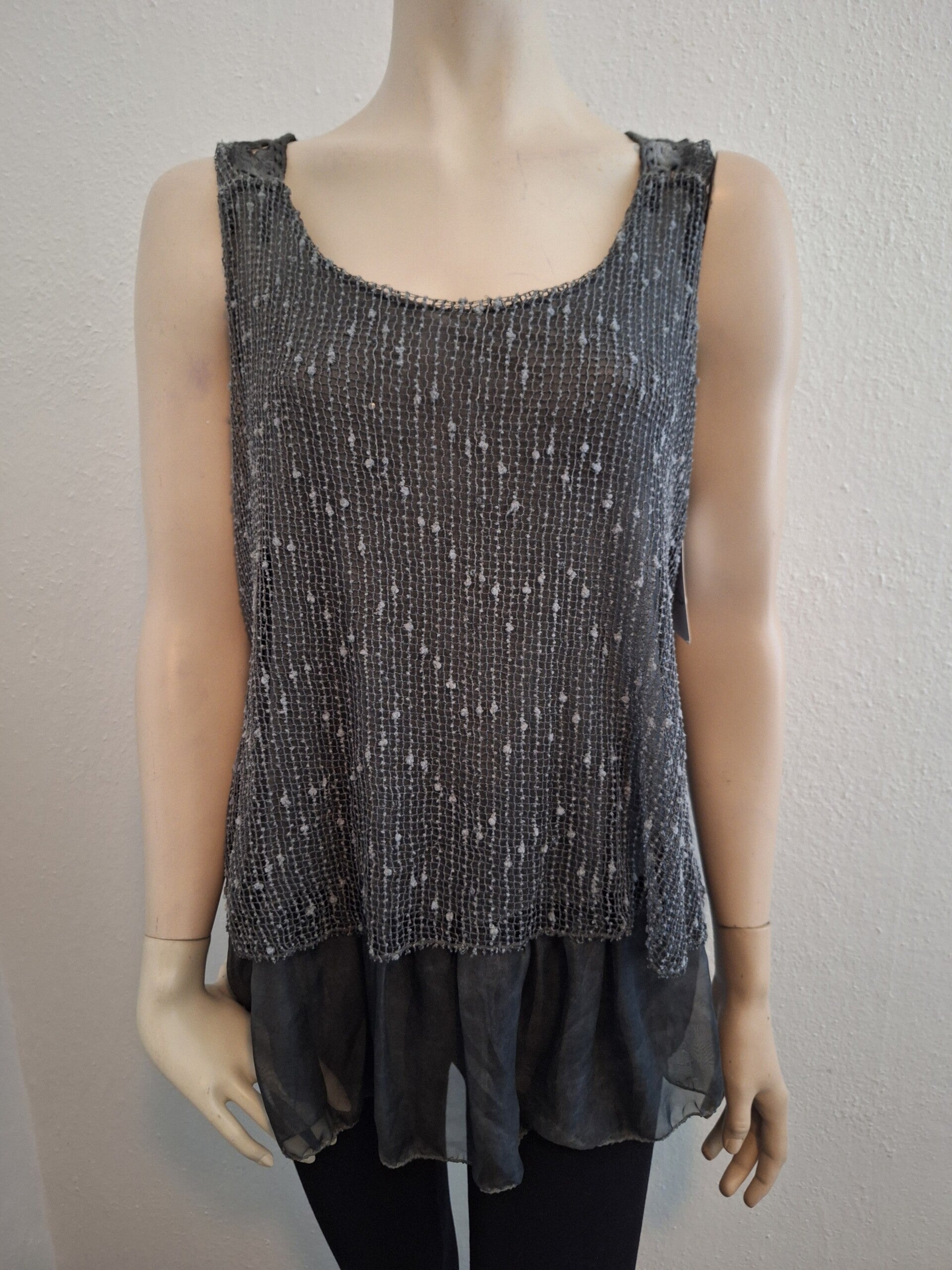 De top heeft een gehaakte bovenkant met kleine bolletjes .