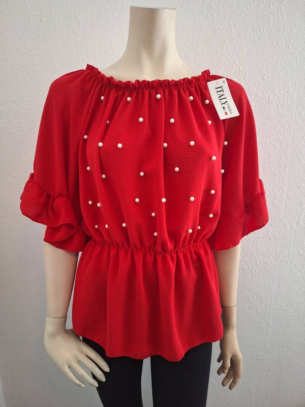 Elastiek band bij de taille en bij de hals waardoor deze leuke shirt ook off shoulder te dragen is