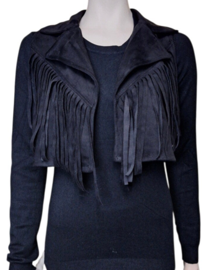 Suède gilet met franjes zwart