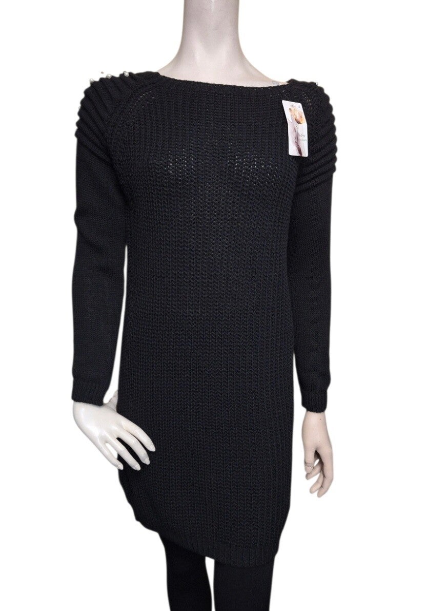Stijlvolle gebreide lange trui met elegante parels op de schouders. De trui heeft een ronde hals en een licht doorschijnende structuur, waardoor het aan te raden is er een top onder te dragen. Perfect voor een vrouwelijke en verfijnde look.