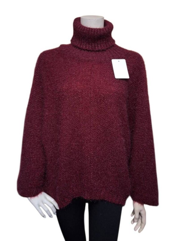 Oversized coltrui met vleermuismouwen bordeaux rood