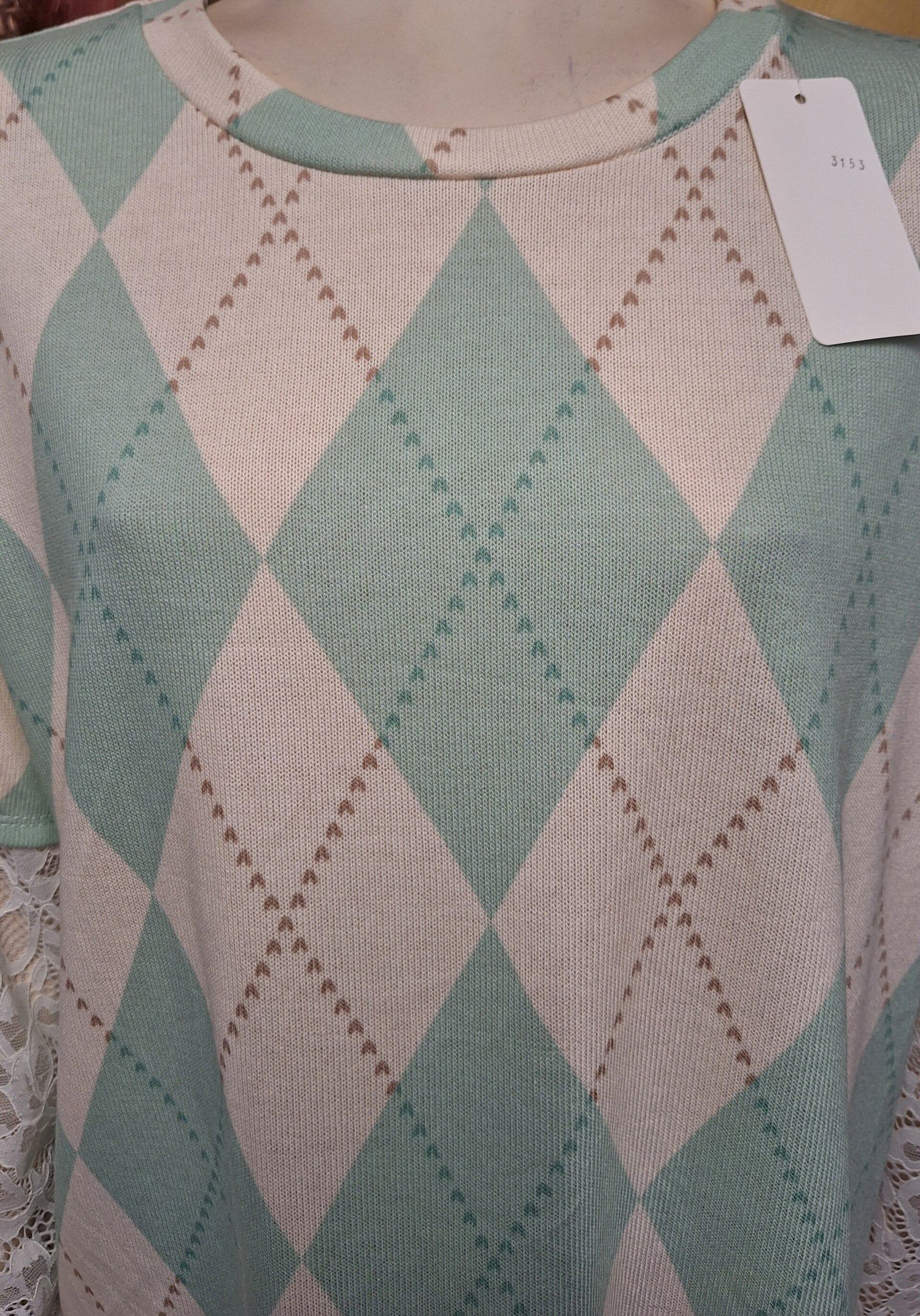 Geruite trui met hartjes & kanten mouwen mint