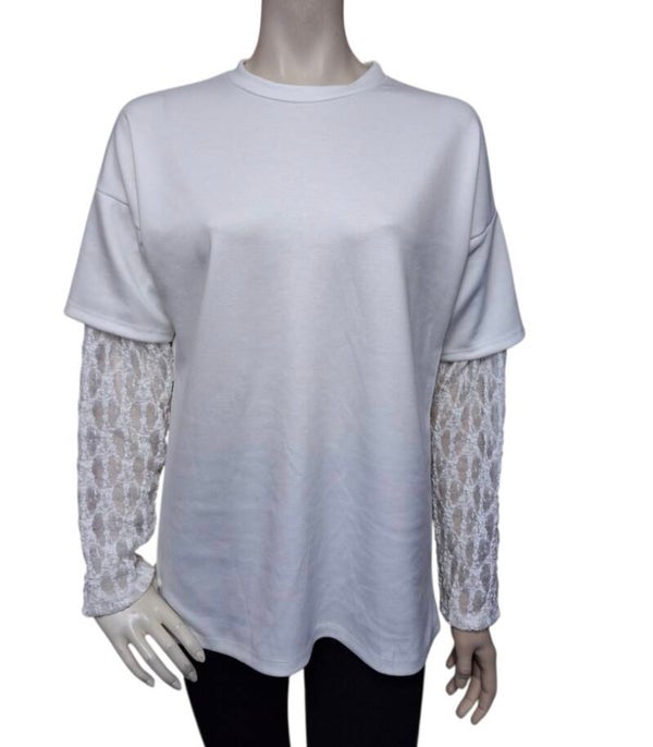 T-shirt met kanten mouwen