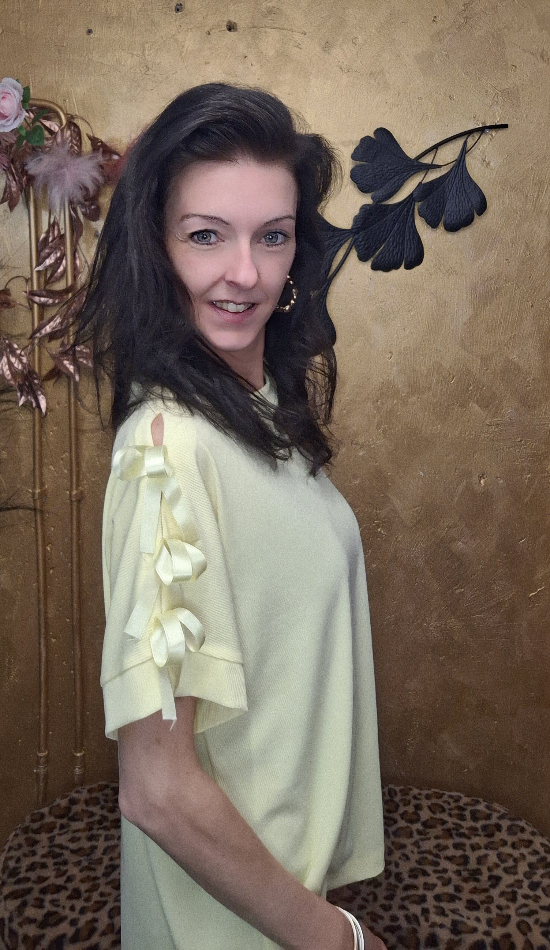 T Shirt met strik detail geel
