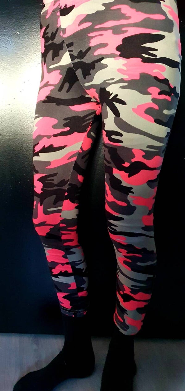 Stoere meiden legging in een geweldige legerprint kleur met opvallende kleur roze erin